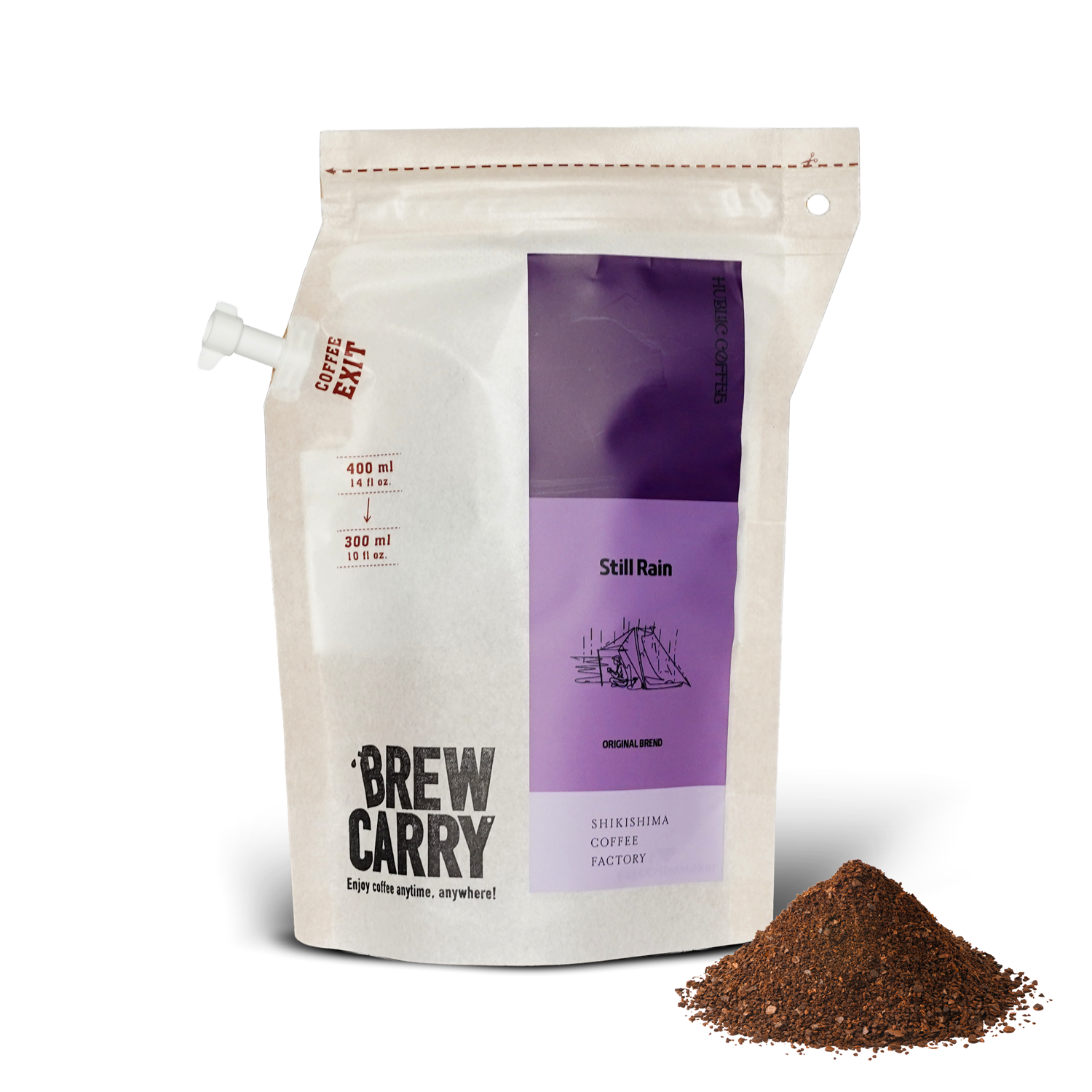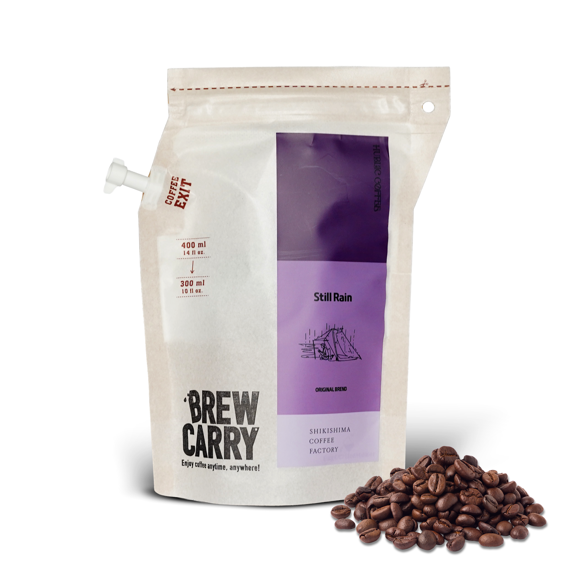 タープの下、しとしとと降る雨音と、深煎りの香りが静かな時間を包み込む